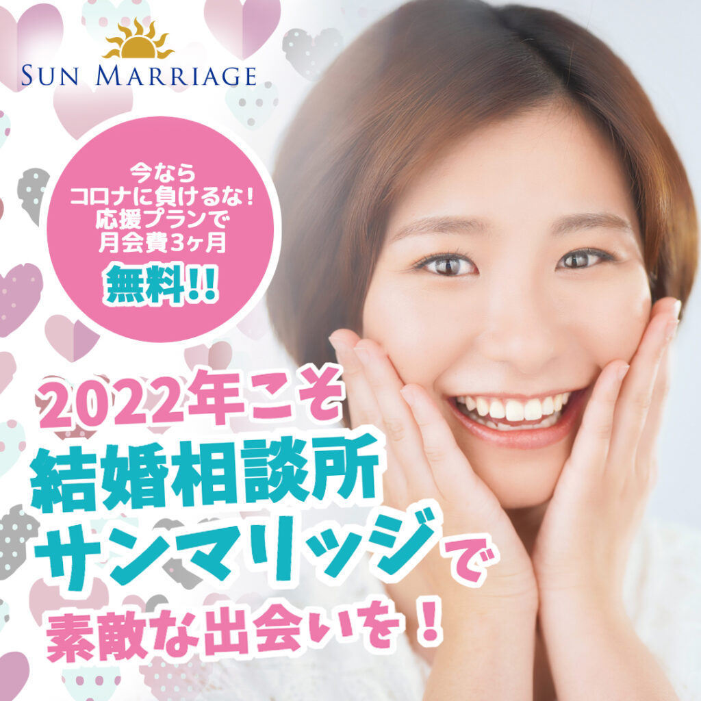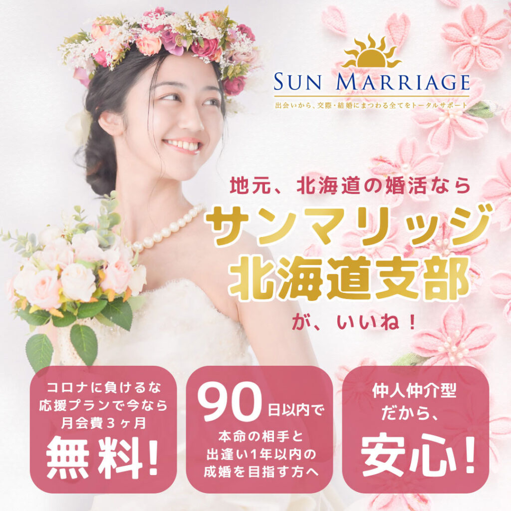結婚相談所サンマリッジ北海道支部様の広告バナー制作事例です。月会費3か月無料の女性向けのキャンペーン内容でした。