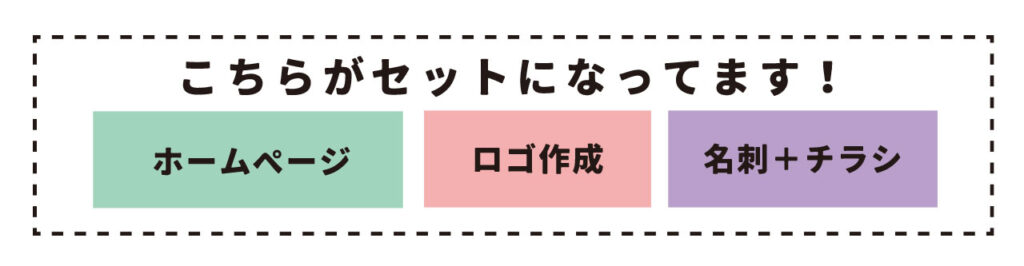 ワードプレスで作成するホームページ(7ページ構成)とブランディング効果を最大限に引き出すロゴ作成+ホームページと統一したチラシ作成、名刺作成がセットになっているお得なプランです。