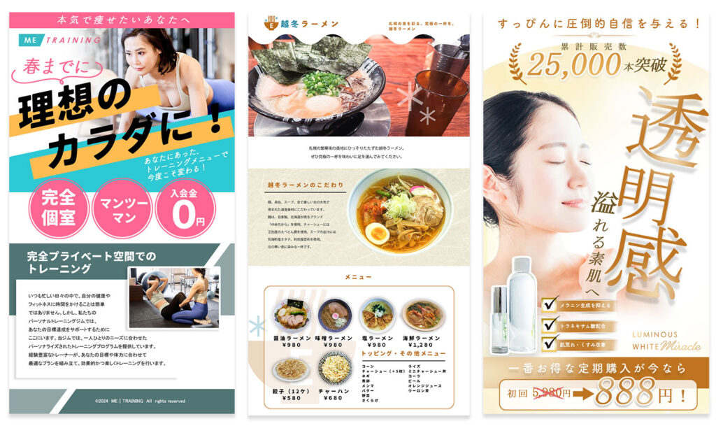 様々なニーズに合わせて目的にあったランディングページを作成します。
